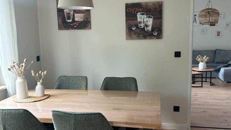 Die Ferienwohnung umfasst 2 Schlafzimmer, ein Wohnzimmer, eine voll ausgestattete Küche mit Kühlschrank und Kaffeemaschine sowie ein Badezimmer mit Dusche und kostenlosen Pflegeprodukten. Gegen Aufpreis können Handtücher und Bettwäsche zur Verfügung gestellt werden. Die Unterkunft ist für Nichtraucher ausgelegt und bietet eine angenehme, saubere Umgebung.