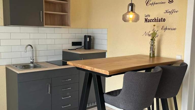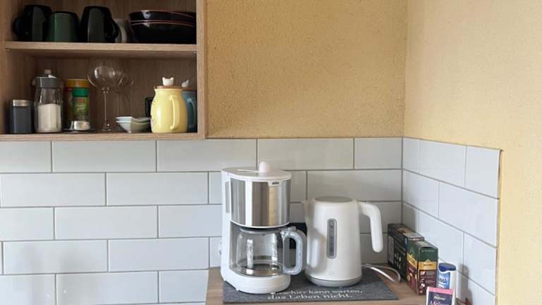 Die voll ausgestattete Küche der Ferienwohnung Tina beinhaltet einen Kühlschrank und eine Kaffeemaschine. Zudem stehen Gästen die Möglichkeit zur Verfügung, sich selbst zu verpflegen. Keine weiteren Verpflegungsangebote sind angegeben.