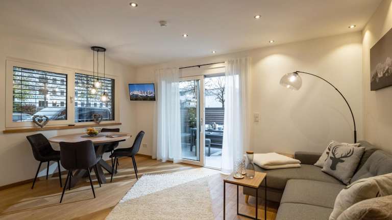 Die Ferienwohnung verfügt über 2 Schlafzimmer, ein Wohnzimmer mit einem Flachbild-TV, sowie eine gut ausgestattete Küche mit Kühlschrank und Geschirrspüler. Das Badezimmer ist mit einer Dusche ausgestattet. Handtücher und Bettwäsche werden bereitgestellt. Die Terrasse bietet einen schönen Blick auf die Berge.