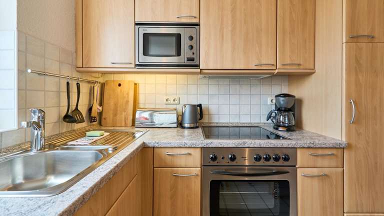Die Ferienwohnung besteht aus einem Schlafzimmer, einem Wohnzimmer und einer voll ausgestatteten Küche, die mit einem Kühlschrank und einem Wasserkocher ausgestattet ist. Zudem bietet die Unterkunft ein Badezimmer mit Dusche und Haartrockner sowie einen TV. Die Ausstattung ist speziell auf den Bedarf von Feriengästen ausgelegt.