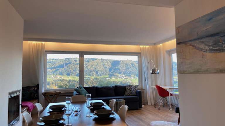 Die Ferienwohnung Traumblick ist in Sigmarszell gelegen und bietet einen herrlichen Blick auf den See sowie die Berge. In der Nähe befinden sich mehrere Sehenswürdigkeiten, darunter das Casino Bregenz in 13 km Entfernung und die Dornbirner Messe, die 26 km entfernt ist. Die Unterkunft bietet auch eine praktische Erreichbarkeit des Flughafens Friedrichshafen, welcher 27 km entfernt liegt.