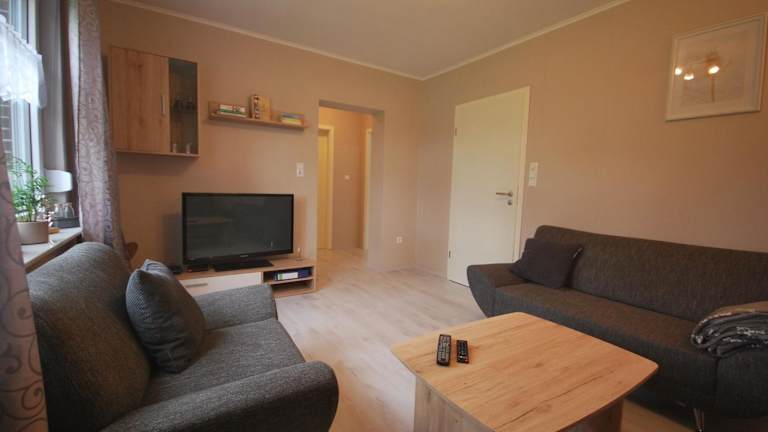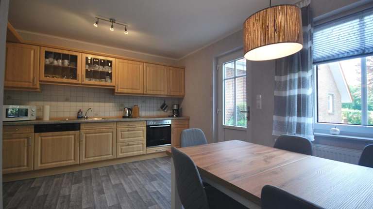 Die Ferienwohnung Up Hobarg 35523 bietet Bequemlichkeiten in einer modernen Unterkunft mit einer eigenen Terrasse und Zugang zu einer Sauna. Die Ausstattung umfasst ein Wohnzimmer, zwei Schlafzimmer, eine voll ausgestattete Küche sowie ein Badezimmer. Handtücher und Bettwäsche werden bereitgestellt. Es handelt sich um eine Nichtraucherunterkunft.