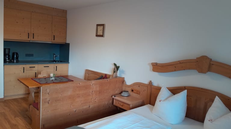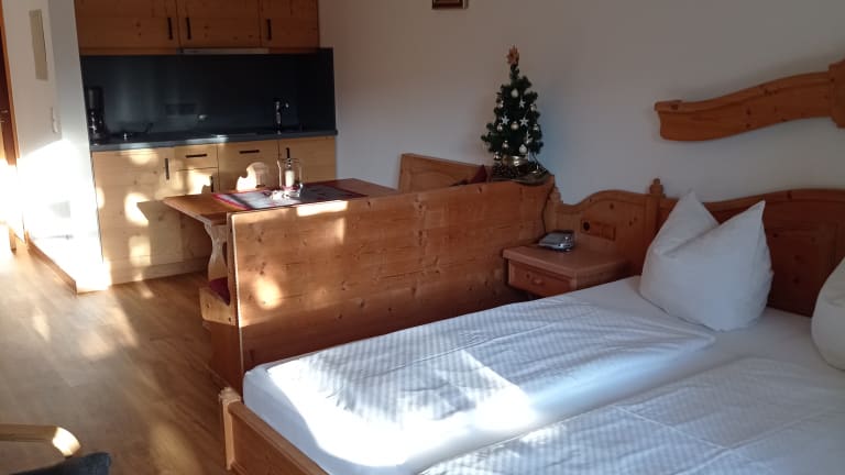 Neu renoviert im Januar 2024! Ruhig und doch zentral gelegenes Appartement (32 m²) in Tegernsee-Süd/Rottach-Egern, direkt an den Rottach-Dammwegen gelegen. Das gemütliche mit bayerischen Möbeln ausgestattete Wohn-Schlafzimmer verfügt über eine gut ausgestattete neue Küchenzeile, mit Spülmaschine, Herd, Dunstabzug, Kaffeemaschine, Wasserkocher, Toaster, und Küchenhandtücher. Kabel-TV, WLAN, Telefon sind selbstverständlich in der Wohnung verfügbar. Das Badezimmer hat eine Badewanne/Dusche, die Hand- und Duschtücher sind inklusive. Die Wohnung hat einen wunderschönen Südbalkon mit Blick auf den Wallberg, liegt direkt neben dem See- und Warmbad und im Ortszentrum. Die Wohnung verfügt über einen Tiefgaragen-Stellplatz (Duplex max. Höhe 1,5 m). Münz-Waschmaschine und –Trockner, eigenes Kellerabteil, abschließbarer Fahrradraum sind vorhanden. Die Wohnung ist ideal geeignet auch für Langzeitaufenthalte. Die Tegernsee-Card mit freier Bus-Fahrt im gesamten Landkreis, freier Schifffahrt, große Ermäßigungen bei Bergbahnen, Schwimmbäder und vieles mehr ist inklusive! Preis ab € 95,- pro Nacht – Preise je nach Saison und Aufenthaltsdauer, inklusive Endreinigung, zuzüglich Kurabgabe.