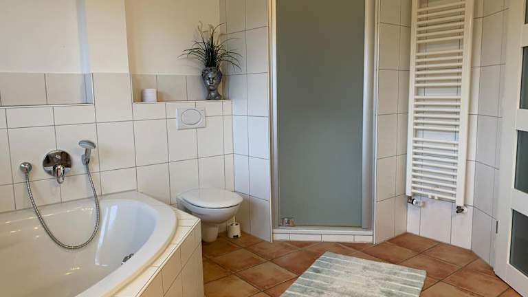 Die Ferienwohnung umfasst 4 Schlafzimmer und ein Wohnzimmer, ausgestattet mit einem Satelliten-Flachbild-TV. Die gut ausgestattete Küche und die 2 Badezimmer sind mit einer Dusche sowie einer Badewanne ausgestattet. Handtücher und Bettwäsche werden bereitgestellt. Zur weiteren Ausstattung gehören eine Terrasse, Heizung und WLAN in allen Bereichen.