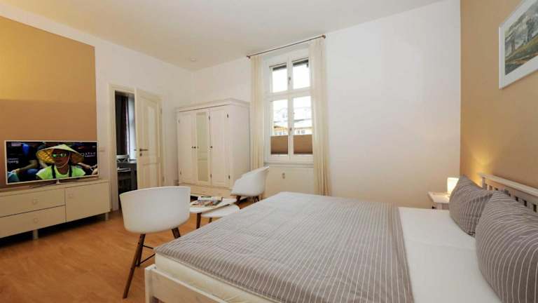 Die Wohnung umfasst ein Schlafzimmer, ein Wohnzimmer sowie eine Terrasse. Die Ausstattung beinhaltet einen Fernseher, Heizung und Nichtraucherzimmer, was zu einer angenehmen und einladenden Atmosphäre beiträgt.