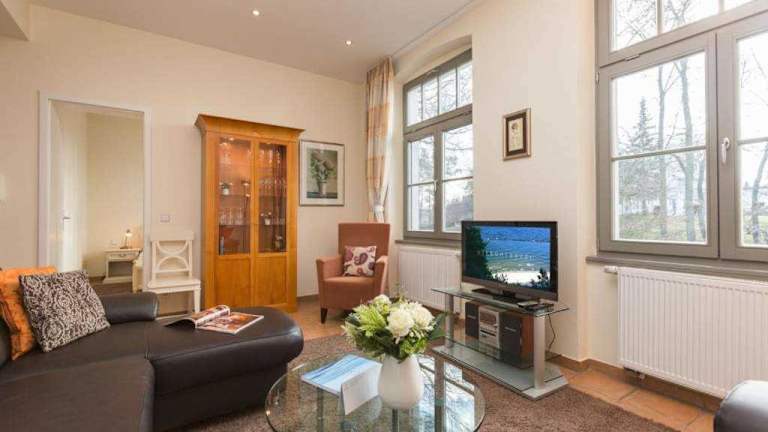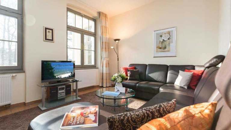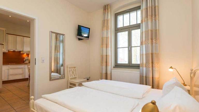Die Ferienwohnung Villa San Marino Appartement 7 befindet sich in Heringsdorf, nur 400 m vom Strand in Heringsdorf entfernt. Die Strände in Ahlbeck und Bansin sind ebenfalls in der Nähe, mit Distanzen von 800 m und 1,4 km. Der Bahnhof Swinemünde liegt 15 km entfernt, und die Seebrücke Ahlbeck erreichen Sie nach 4,3 km. Der nächste Flughafen ist der Flughafen Heringsdorf, 16 km von der Unterkunft.