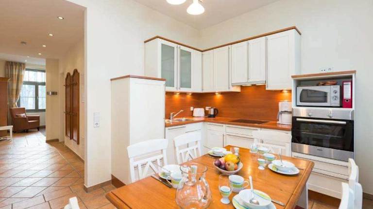 Die Ferienwohnung verfügt über zwei Schlafzimmer, ein Wohnzimmer mit einem Flachbild-TV sowie eine voll ausgestattete Küche mit Kühlschrank und Geschirrspüler. Zudem steht Ihnen ein Badezimmer mit Dusche zur Verfügung. Handtücher und Bettwäsche sind vorhanden.