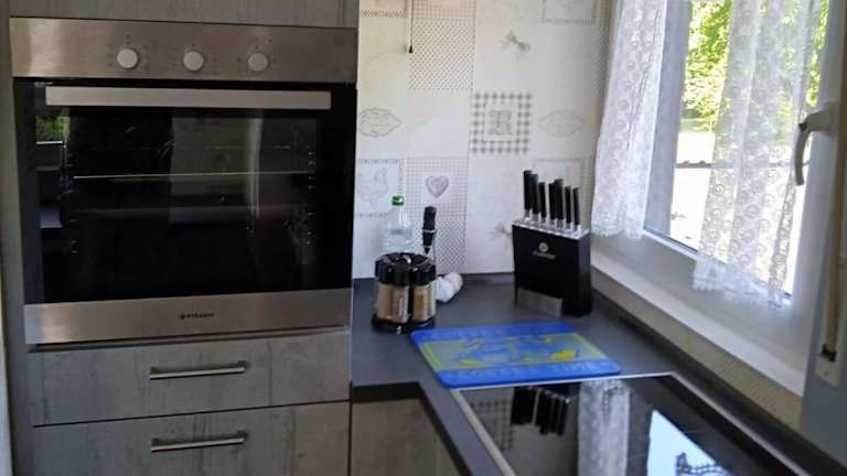Die Ferienwohnung ist mit einer voll ausgestatteten Küche ausgestattet, die die Zubereitung von eigenen Mahlzeiten ermöglicht.