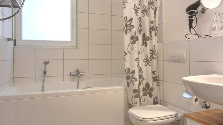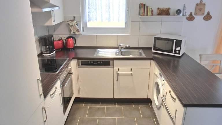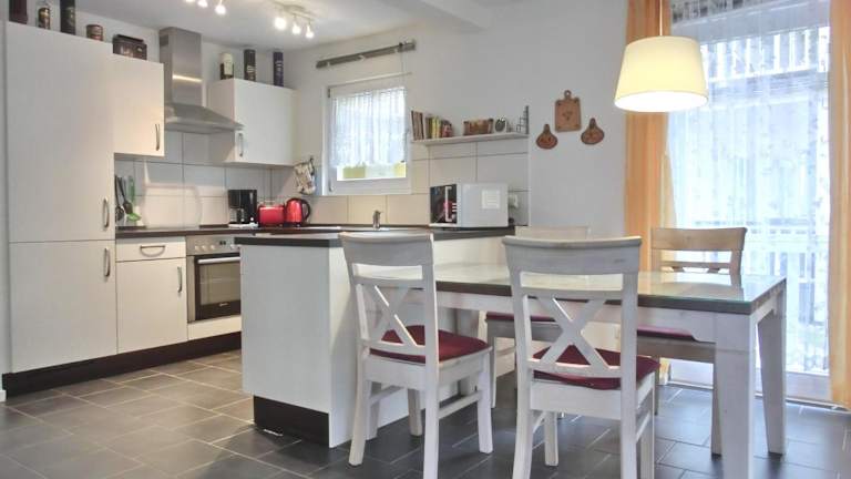 Die Ferienwohnung ist ausgestattet mit 2 Schlafzimmern, einer voll ausgestatteten Küche mit Kühlschrank und Geschirrspüler sowie 1 Badezimmer mit Dusche und Badewanne. Allergikerfreundliche Zimmer sind ebenfalls verfügbar.
