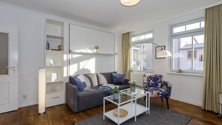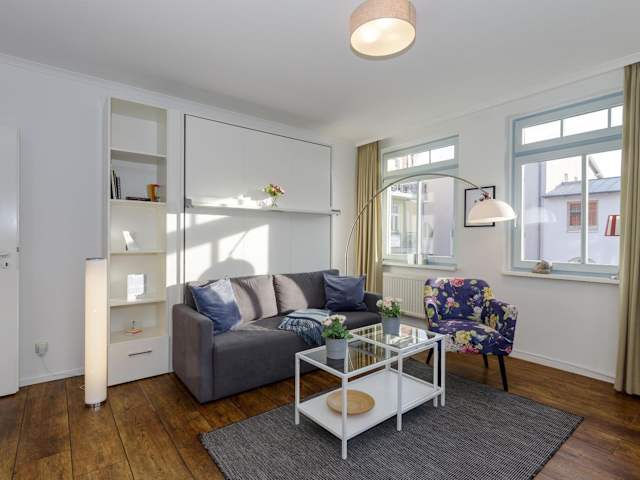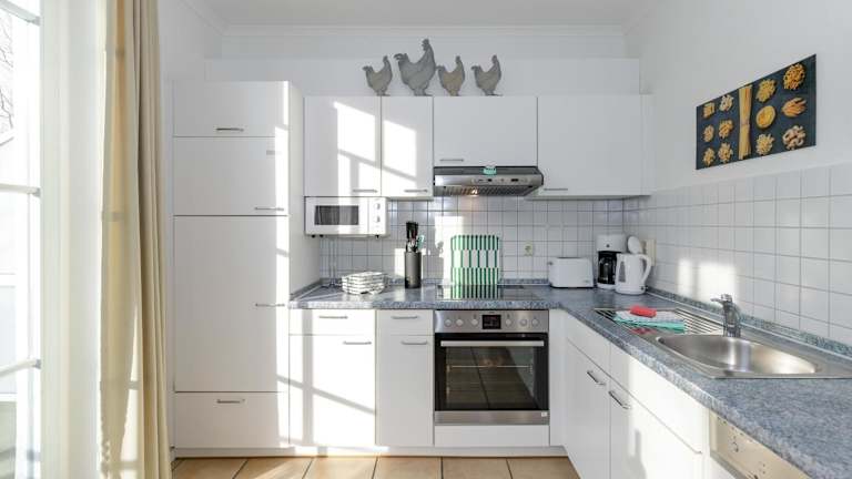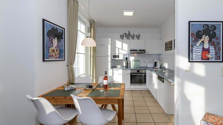 Die Ferienwohnung verfügt über 1 Schlafzimmer, eine gut ausgestattete Küche mit Kühlschrank und Geschirrspüler sowie ein Badezimmer mit Dusche und Haartrockner. Handtücher und Bettwäsche werden bereitgestellt.
