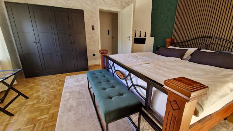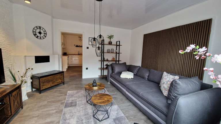 Die Ferienwohnung umfasst ein Schlafzimmer und ein Wohnzimmer sowie ein Badezimmer mit Dusche. Zur Ausstattung gehören ein Flachbild-TV, Kaffeemaschine und Handtücher sowie Bettwäsche.