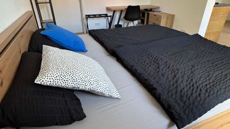 Die Ferienwohnung verfügt über ein Schlafzimmer sowie ein Badezimmer mit Dusche. In der gut ausgestatteten Küche stehen ein Kühlschrank und ein Geschirrspüler zur Verfügung. Ein Flachbild-TV mit Satellitenkanälen sorgt für Unterhaltung. Handtücher und Bettwäsche werden bereitgestellt.