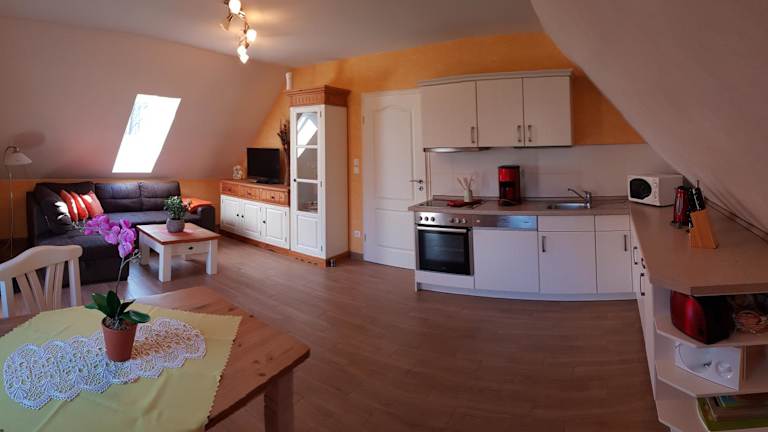 Die Unterkunft Ferienwohnung Wasserlilie bietet gemütliche Übernachtungsmöglichkeiten. Die Ferienwohnung verfügt über einen Balkon mit Gartenblick und ist rauchfrei. Handtücher und Bettwäsche sind verfügbar, und die Terrasse lädt zum Entspannen ein. Die Ferienwohnung wird von einem privaten Gastgeber geführt.