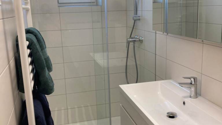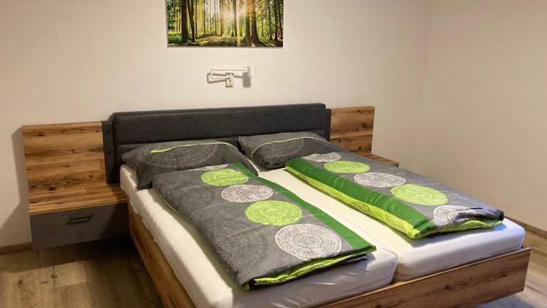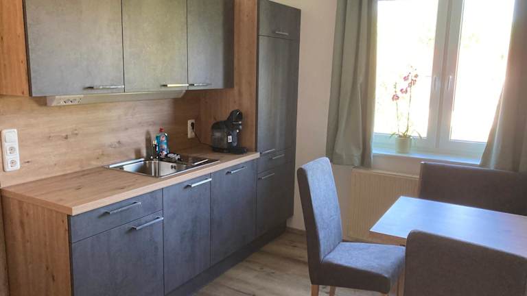 Die Ferienwohnung beinhaltet 2 Schlafzimmer, eine voll ausgestattete Küche mit Kühlschrank und Geschirrspüler, einen Sitzbereich sowie ein Badezimmer mit Dusche. Handtücher und Bettwäsche werden bereitgestellt. Ein Flachbild-TV sorgt für Unterhaltung.