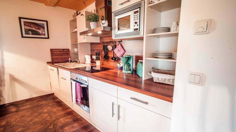 Die Unterkunft verfügt über eine Gemeinschaftsküche, in der Gäste ihre eigenen Mahlzeiten zubereiten können. Lebensmittellieferungen sind gegen zusätzliche Gebühren möglich. Getränke wie Wein und Sekt stehen ebenfalls gegen Aufpreis zur Verfügung.
