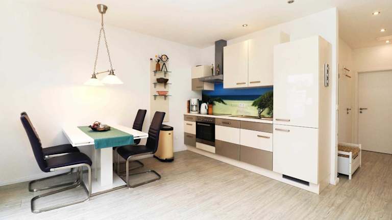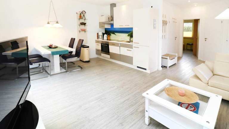 Die Ferienwohnung verfügt über zwei Schlafzimmer, ein Wohnzimmer und ein Badezimmer mit Dusche. Zur Ausstattung gehören ein Flachbild-TV sowie eine gut ausgestattete Küche mit Kühlschrank und Geschirrspüler. Handtücher und Bettwäsche sind nicht im Preis enthalten, können jedoch in der Unterkunft ausgeliehen werden.