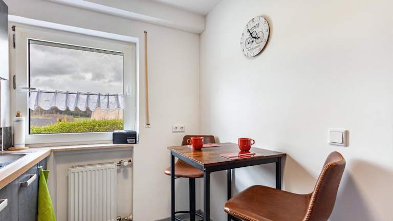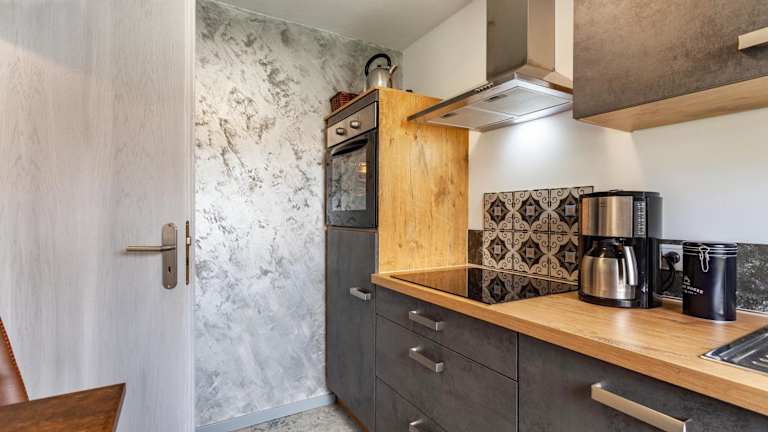 Die Ferienwohnung besteht aus einem Schlafzimmer, einem Wohnzimmer und einer voll ausgestatteten Küche mit Kühlschrank und Kaffeemaschine. Ein Badezimmer mit Dusche und kostenlosen Pflegeprodukten ist ebenfalls vorhanden. Handtücher und Bettwäsche werden bereitgestellt.