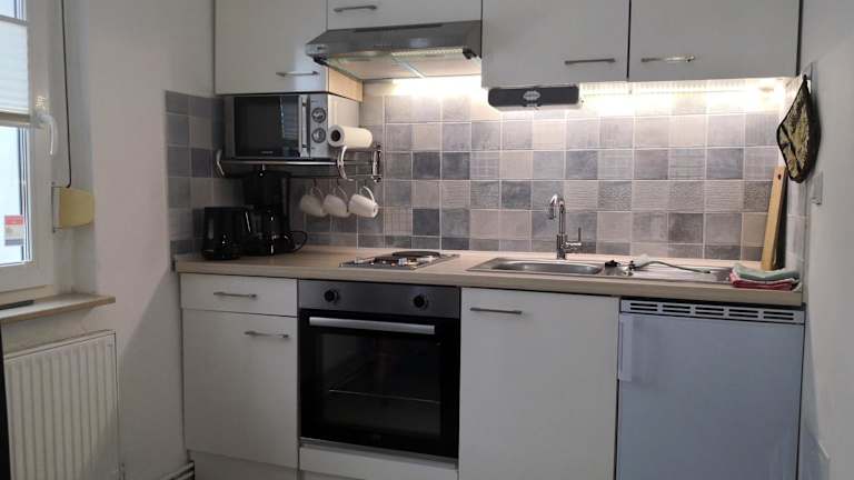Die Ferienwohnung bietet 2 Schlafzimmer, einen Flachbild-TV mit Satellitenkanälen, eine gut ausgestattete Küche mit Kühlschrank und Ofen sowie ein Badezimmer mit Badewanne. Handtücher und Bettwäsche werden zur Verfügung gestellt.