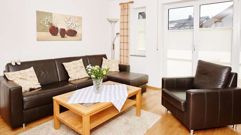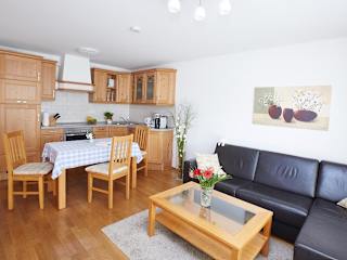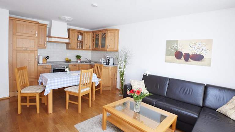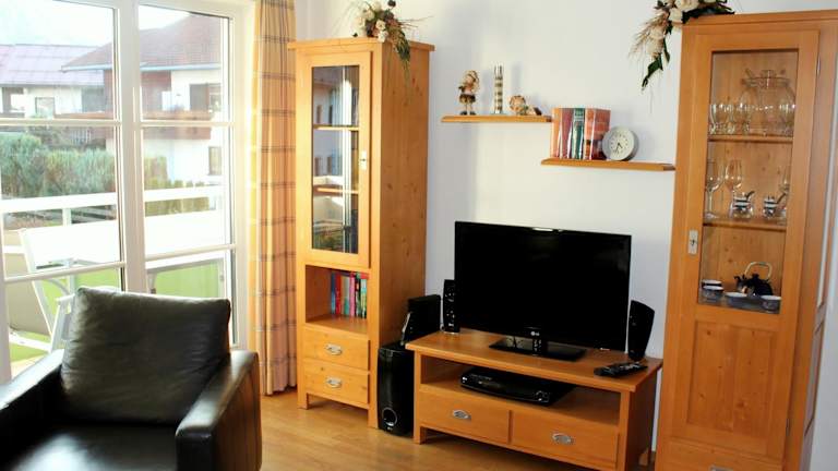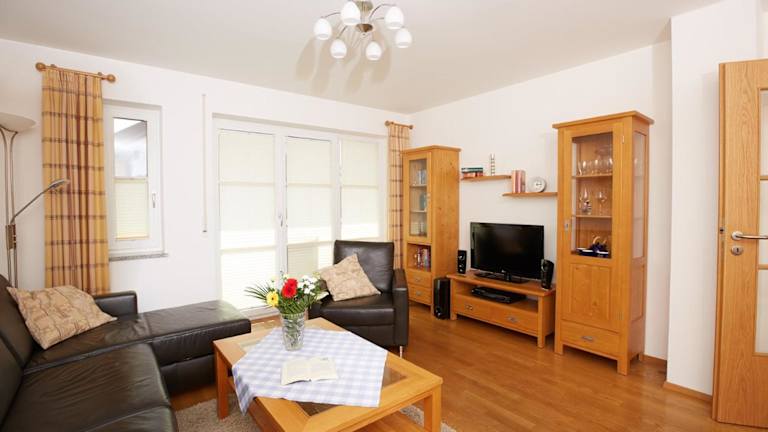 Die Ferienwohnung umfasst 1 Schlafzimmer und ein Wohnzimmer mit einem Flachbild-TV. Eine gut ausgestattete Küchenzeile mit Kühlschrank und Geschirrspüler ist ebenfalls vorhanden. Zudem gibt es ein Badezimmer mit Dusche, sowie die Bereitstellung von Handtüchern und Bettwäsche.