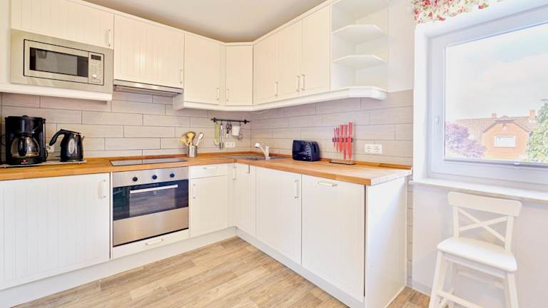 Die Ferienwohnung verfügt über ein Schlafzimmer, ein Wohnzimmer, ein Badezimmer mit Badewanne sowie eine gut ausgestattete Küche mit Kühlschrank und Geschirrspüler. Eine Terrasse mit Stadtblick lädt zum Verweilen ein. Handtücher und Bettwäsche werden zur Verfügung gestellt.