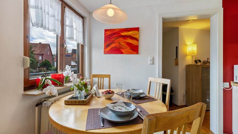Die Ferienwohnung Zu Hause auf Zeit bietet Übernachtungsmöglichkeiten mit kostenlosem WLAN und einem TV. Die Unterkunft besticht durch einen Balkon und umfasst ein Schlafzimmer, ein Wohnzimmer sowie eine voll ausgestattete Küche. Es stehen Parkplatzmöglichkeiten zur Verfügung, und die Unterkunft ist rauchfrei. Es wird gebeten, die voraussichtliche Ankunftszeit im Voraus mitzuteilen.
