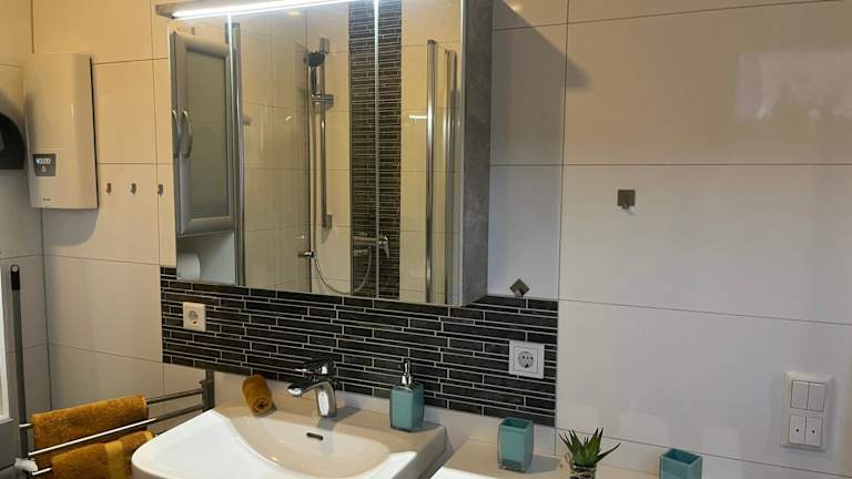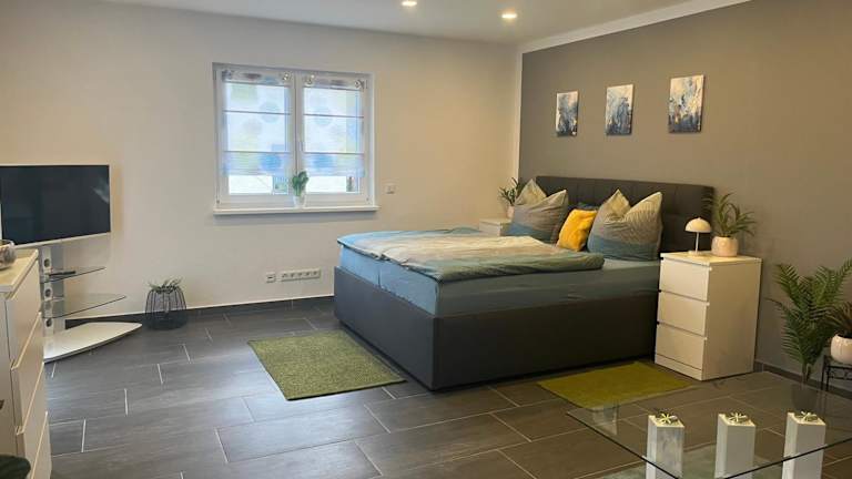 Die Unterkunft liegt in Bad Salzungen, umgeben von einer landschaftlich reizvollen Umgebung, die sich hervorragend zum Wandern und Velofahren eignet.