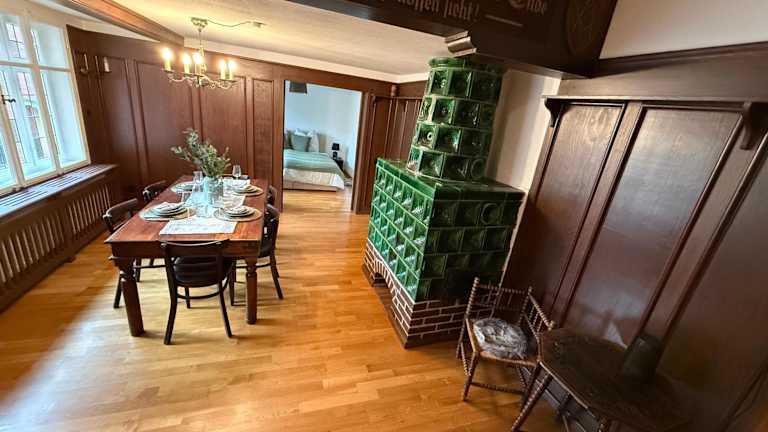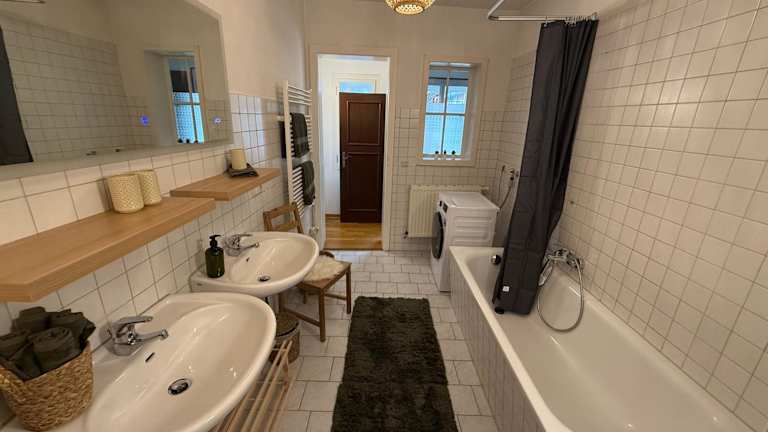 Die Ferienwohnung Zum Leoparden bietet über 100 Quadratmeter Wohnfläche und ist mit Annehmlichkeiten wie kostenlosem Wifi und einem Flachbild-TV ausgestattet. Die Unterkunft wird von einem privaten Gastgeber geführt und ist als Nichtraucherunterkunft konzipiert. Zudem sind keine Junggesellen-/Junggesellinnenabschiede oder ähnliches erlaubt.