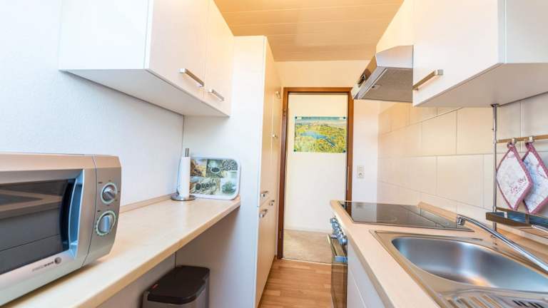 Die Ferienwohnung ist mit einer voll ausgestatteten Küche ausgestattet, die es Gästen ermöglicht, ihre eigenen Mahlzeiten zuzubereiten. Grillmöglichkeiten stehen ebenfalls zur Verfügung, was für gesellige Abende im Garten ideal ist.