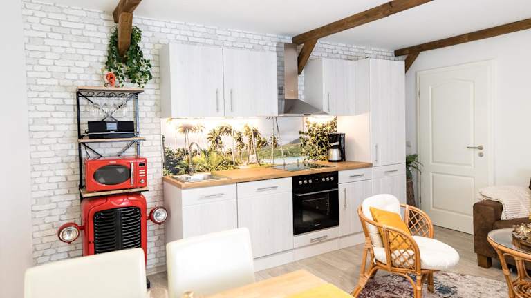 In der Ferienwohnung ZUM WOHLFÜHLEN können die Gäste eine voll ausgestattete Küchenzeile nutzen, die einen Kühlschrank und eine Kaffeemaschine umfasst. Frühstück im Zimmer wird angeboten, und Essenslieferungen in die Unterkunft sind möglich. Gäste können ausserdem in einem Café vor Ort verweilen.