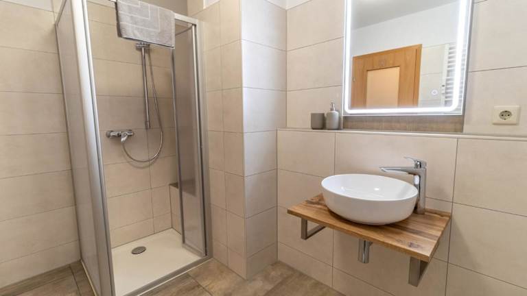 Die Ferienwohnung umfasst 1 Schlafzimmer, ein heimeliges Wohnzimmer mit Flachbild-TV sowie eine gut ausgestattete Küche mit Kühlschrank und Geschirrspüler. Das Badezimmer ist mit einer Dusche ausgestattet. Zur Ausstattung gehören auch Handtücher und Bettwäsche. Zudem steht eine Terrasse mit Gartenblick zur Verfügung.