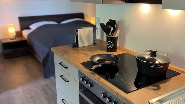 Die Ferienwohnung umfasst ein Schlafzimmer und ist mit einer voll ausgestatteten Küche ausgestattet, die einen Kühlschrank und einen Geschirrspüler beinhaltet. Zudem gibt es ein Badezimmer mit Dusche, Haartrockner und Waschmaschine. Ein Flachbild-TV ist ebenfalls vorhanden.