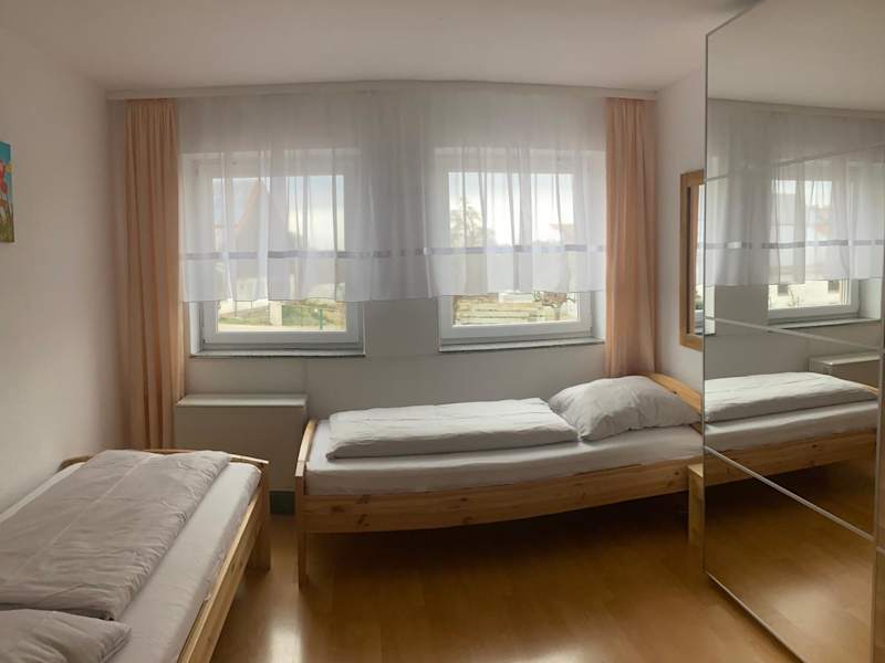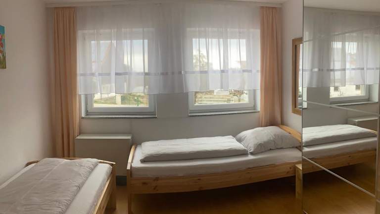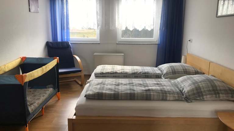 Die Ferienwohnung besteht aus zwei Schlafzimmern, einem Wohnzimmer und einem Badezimmer mit Dusche. Die Küche ist mit einem Kühlschrank und einer Kaffeemaschine ausgestattet. Handtücher und Bettwäsche werden zur Verfügung gestellt.