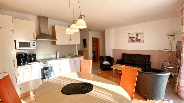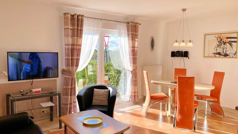Die Ferienwohnungen am Hochzeitsberg 3 a - Fewo 1 bieten eine heimelige Atmosphäre mit einem Garten und einer Terrasse. Gäste können die Vorzüge von kostenlosem Wifi nutzen.