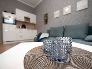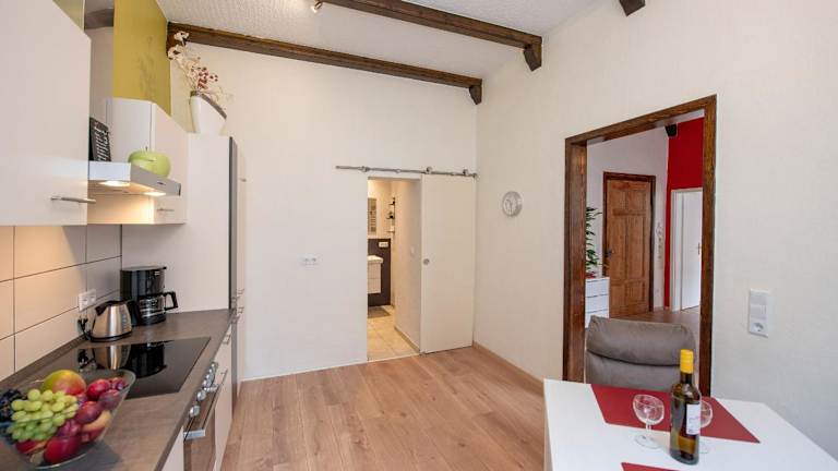 Die Ferienwohnungen sind mit einer voll ausgestatteten Küche inklusive Herdplatte, Kühlschrank, Toaster, Kaffeemaschine und Wasserkocher eingerichtet. Ein Essbereich ist ebenfalls vorhanden, der den Gästen ermöglicht, eigene Mahlzeiten zuzubereiten und zu geniessen. Weitere Verpflegungsmöglichkeiten in der Umgebung sind gegeben.