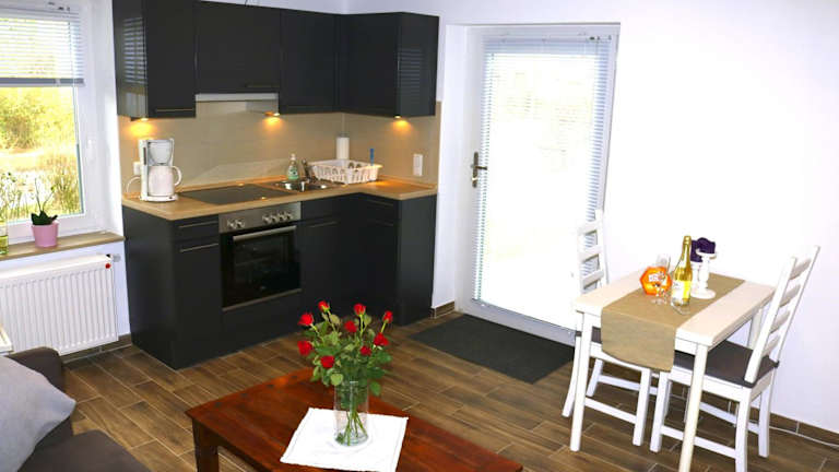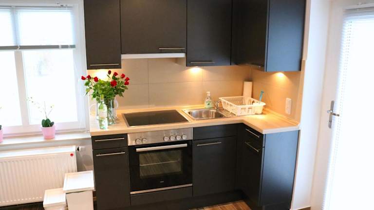Die Ferienwohnung besteht aus einem Schlafzimmer, einem Wohnzimmer und einer gut ausgestatteten Küche. Die Küche ist mit einem Kühlschrank und einem Ofen ausgestattet. Zudem bietet die Unterkunft einen Flachbild-TV mit Satellitenkanälen.