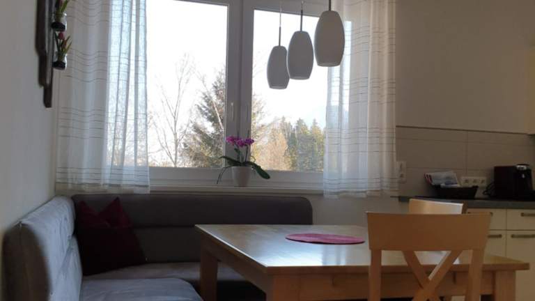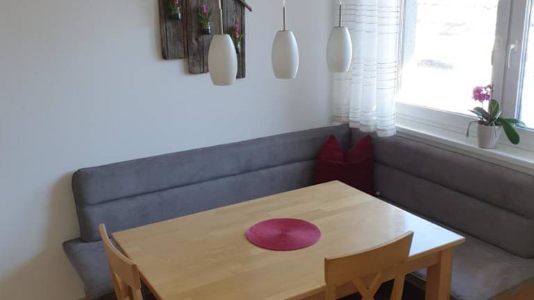 Die Ferienwohnungen bieten einen Balkon mit Bergblick, einen Sitzbereich, einen Satelliten-Flachbild-TV sowie eine voll ausgestattete Küche mit Kühlschrank, Geschirrspüler, Herdplatte und Mikrowelle. Ein eigenes Badezimmer mit Dusche und Haartrockner ist ebenfalls vorhanden. Die Wohnungen sind für Allergiker geeignet.