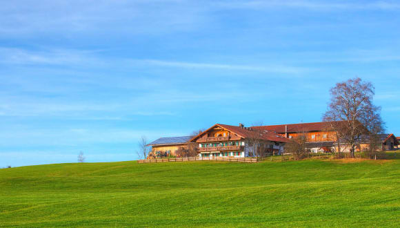 Bio- Bauernhof mit Ferienappartements in herrlicher Alleinlage. Freier Blick auf Berge, Königsschlösser und Hopfensee