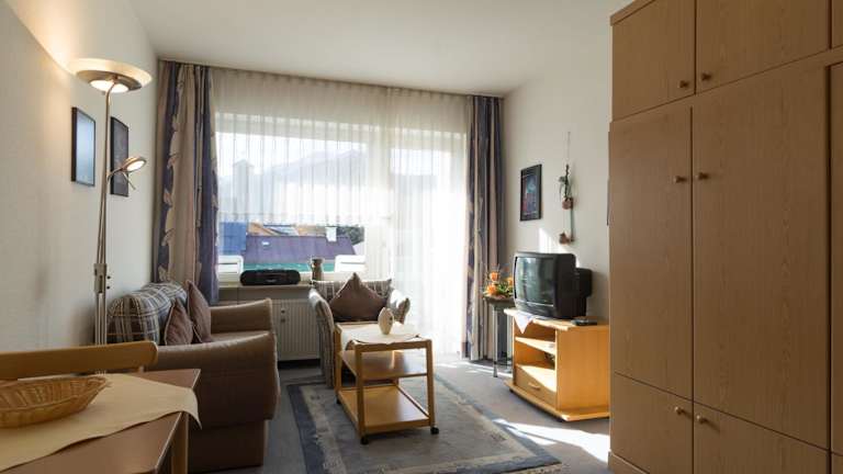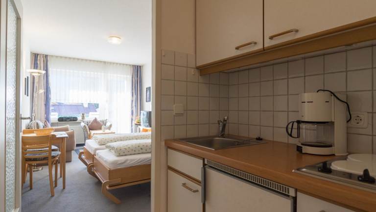 Die Ferienwohnung beinhaltet ein Schlafzimmer, einen Flachbild-TV mit Kabelkanälen, sowie eine gut ausgestattete Küchenzeile mit Kühlschrank und Herdplatte. Das Badezimmer ist mit einer Dusche ausgestattet. Handtücher und Bettwäsche werden bereitgestellt.