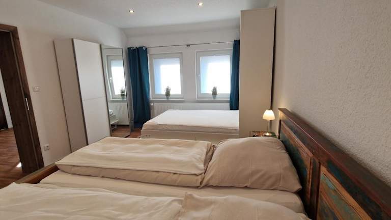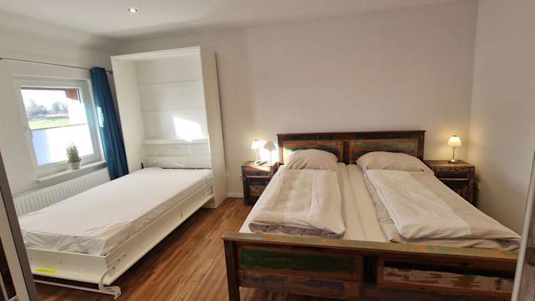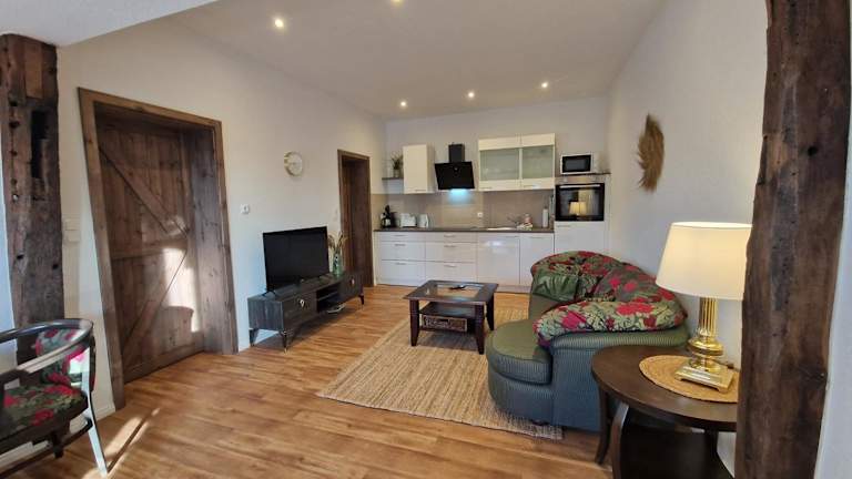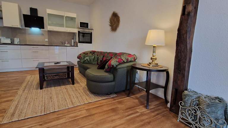 Die Ferienwohnung besteht aus einem Schlafzimmer, einem Wohnzimmer sowie einer voll ausgestatteten Küche, die einen Kühlschrank und eine Kaffeemaschine beinhaltet. Ein Badezimmer mit Dusche, Haartrockner sowie Handtüchern und Bettwäsche ist ebenfalls vorhanden.