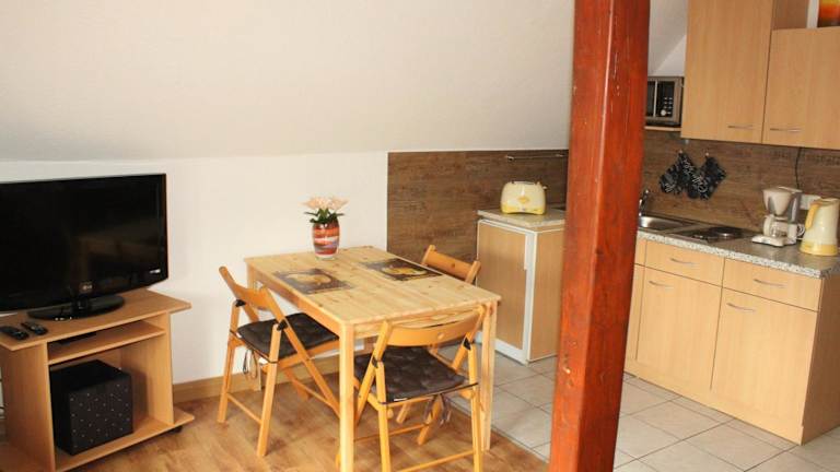 Die Wohneinheiten sind mit Parkettböden ausgestattet und verfügen über eine voll ausgestattete Küche mit Kühlschrank, Ofen, Mikrowelle, Herdplatte sowie Kaffeemaschine und Wasserkocher. Ein Essbereich, ein Flachbild-TV mit Satellitenkanälen und ein eigenes Badezimmer mit Dusche und Haartrockner sind ebenfalls vorhanden. Eine Terrasse steht den Gästen zur Verfügung.