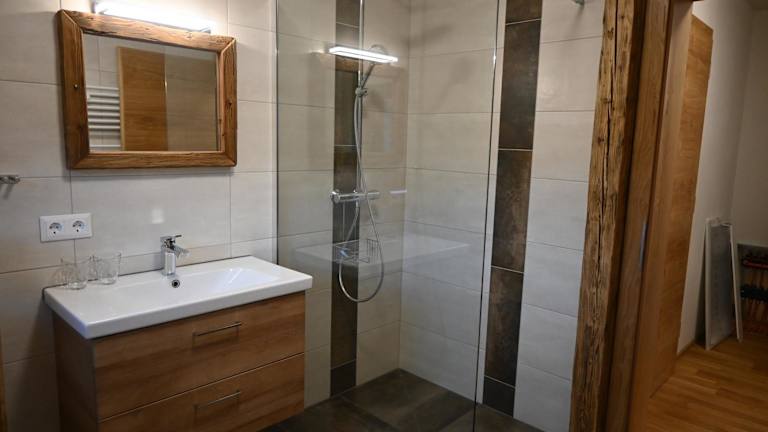 Die Ferienwohnungen sind mit einer eigenen Terrasse versehen, die einen herrlichen Ausblick bietet. Jede Wohneinheit umfasst eine Küche mit einem Ofen und einer Herdplatte, sowie ein eigenes Badezimmer mit Dusche, was für Bequemlichkeit sorgt.