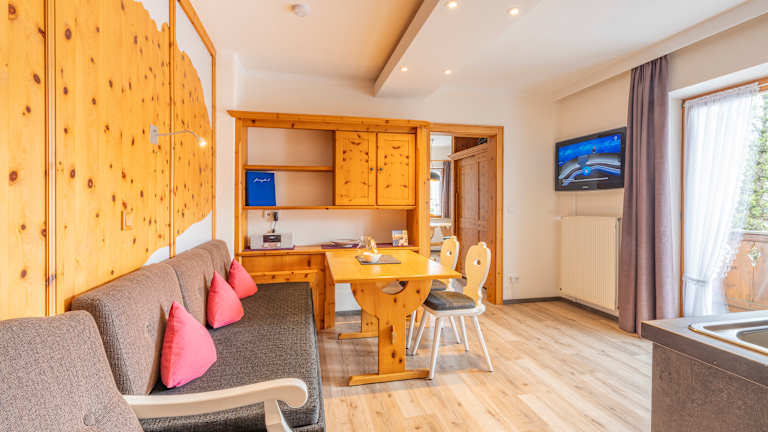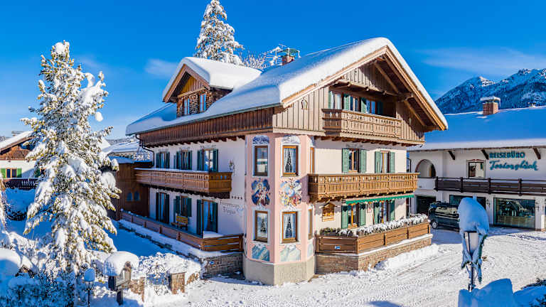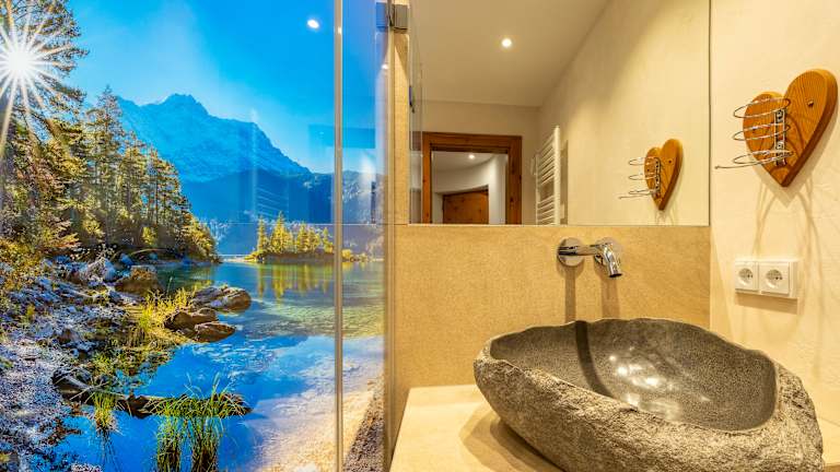 Willkommen in den Ferienwohnungen Ferienglück – Ihrem Zuhause für Erholung und Naturgenuss in der traumhaften Alpenwelt Karwendel. Unser familiengeführtes Haus vereint traditionelle bayerische Bauweise mit modernen Annehmlichkeiten und bietet Ihnen neun individuell gestaltete Ferienwohnungen, die Komfort, Stil und Gemütlichkeit harmonisch verbinden. Ein besonderes Highlight jeder Wohnung ist die hochwertige Ausstattung mit Zirbenholz und naturverbundenen Materialien, die für ein gesundes Raumklima und besondere Wohlfühlmomente sorgen. Sie genießen kostenfreies High-Speed-WLAN, moderne Flachbild-TVs (teilweise zwei pro Wohnung) und voll ausgestattete Küchen mit Filter- und Nespresso-Kaffeemaschine. Für Ihre aktive Urlaubsgestaltung stehen Ihnen ein kleiner Fitness- und Freizeitraum, Leihfahrräder, Schlitten und Nordic-Walking-Stöcke zur Verfügung. Ihre Sportausrüstung können Sie sicher in der abschließbaren Ski- und Fahrradgarage unterbringen. Als unser Gast profitieren Sie zudem von der AlpenweltCard, mit der Sie unter anderem Busse in der Region kostenfrei nutzen können. Direkt am Haus stehen Parkplätze und eine Wallbox für E-Autos (11 kW) bereit – perfekt für entspannte Anreisen und umweltbewusste Mobilität.