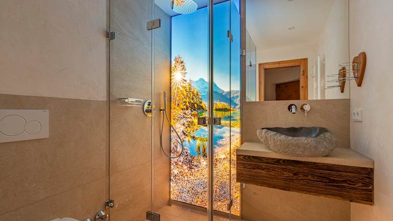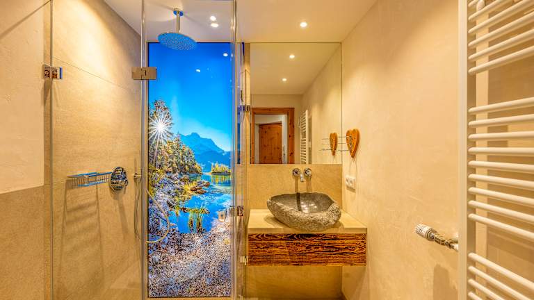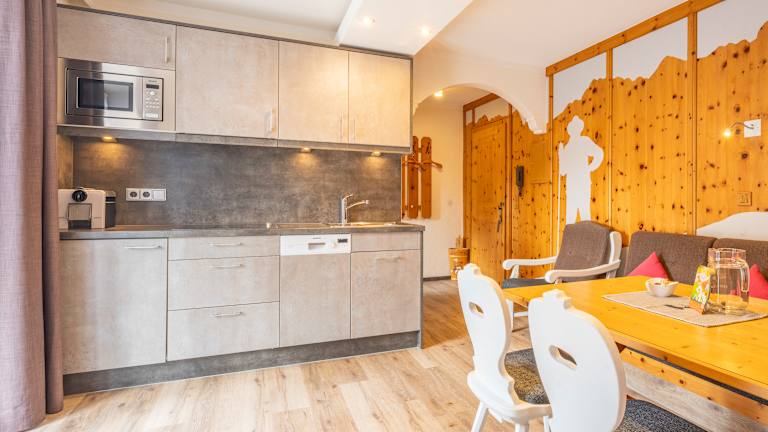 Ausstattung der Ferienwohnungen Küche: • Nespresso-Kaffeemaschine & Filter-Kaffeemaschine • Ceran-Kochfeld (2 oder 4 Platten), Dunstabzug • Geschirrspüler, Toaster, Mikrowelle, Wasserkocher Badezimmer: • Teilweise ebenerdige Glasdusche mit Regenwalddusche • Findling-Waschbecken aus Granit • Handtücher, Bademäntel, Kosmetikspiegel, Fön • Dusche/WC Schlafzimmer: • Mit Zirbenholz ausgestattet für erholsamen Schlaf • Abgetrenntes Schlafzimmer mit zusätzlichem TV Wohnbereich: • Flatscreen-TV (94 cm), teilweise zusätzlicher TV im Schlafzimmer • Blu-ray/DVD-Player, Safe • Kostenloses High-Speed WLAN & LAN (Internet per WLAN oder Kabel) • Nichtraucher-Wohnung, Rauchmelder • Infomappe mit vielen Tipps und Ausflugszielen • Digitale Gästemappe mit tagesaktuellen Empfehlungen (A–Z, Touren, Gastronomie, Veranstaltungen u. v. m.)