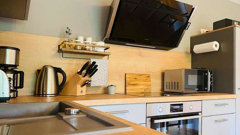 Die Ferienwohnungen verfügen über einen Balkon mit Gartenblick, einen Sitzbereich und einen Satelliten TV. Die voll ausgestattete Küche beinhaltet einen Kühlschrank, Geschirrspüler, Ofen, Mikrowelle, Herdplatte, Kaffeemaschine und Wasserkocher. Jedes Ferienwohnung hat ein eigenes Badezimmer mit Dusche und Haartrockner.
