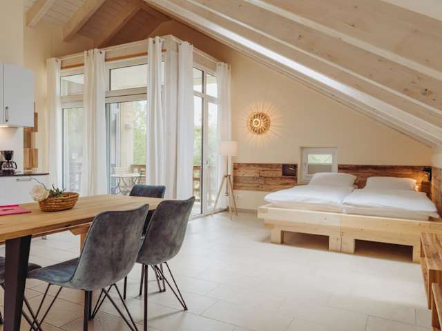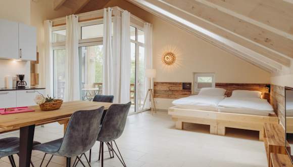Jedes Apartment ist mit einer voll ausgestatteten Küche ausgestattet, die unter anderem einen Geschirrspüler, Backofen und Kühlschrank umfasst. Essenslieferungen in die Unterkunft sind möglich. Die Pflege von individuellen Wünschen wird, je nach Verfügbarkeit, gerne unterstützt.