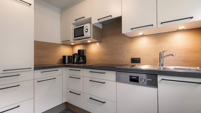 Die Ferienwohnungen im Haus Jägerheim sind mit einer modernen Küche ausgestattet, die einen Kühlschrank, einen Geschirrspüler, eine Herdplatte und eine Kaffeemaschine umfasst. Dadurch können die Gäste ihre eigenen Mahlzeiten zubereiten und die Bequemlichkeiten der Unterkunft voll ausnutzen.