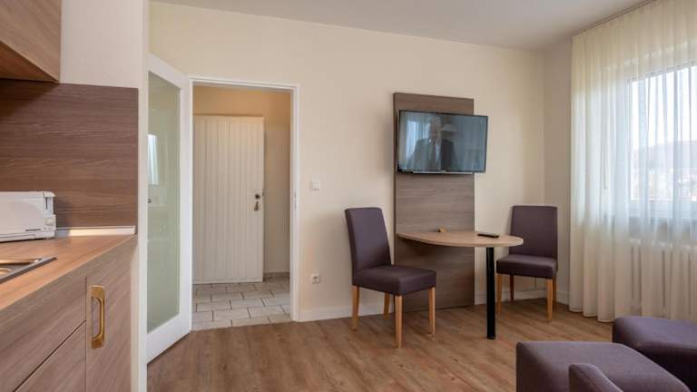 Die Ferienwohnung umfasst 1 Schlafzimmer, ein Wohnzimmer mit Flachbild-TV, eine gut ausgestattete Küche mit Kühlschrank und Mikrowelle sowie 1 Badezimmer mit Dusche. Handtücher und Bettwäsche werden bereitgestellt.