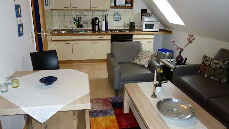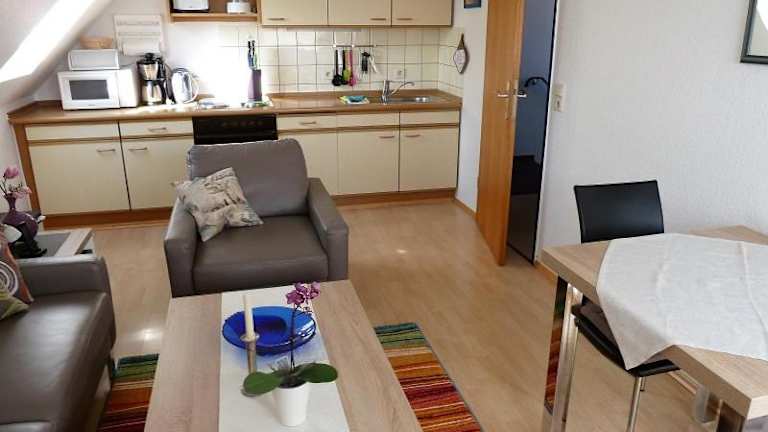 Die Ferienwohnungen verfügen über eine voll ausgestattete Küche mit Kühlschrank, Ofen, Mikrowelle, Herdplatte, Kaffeemaschine und Wasserkocher, die es den Gästen ermöglicht, ihre Mahlzeiten selbst zuzubereiten.