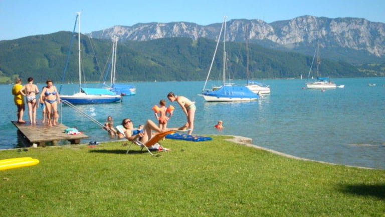 Herzlich Willkommen im Haus Maria Gruber, familienfreundliches Haus mit traumhaftem Blick auf den Attersee und das Höllengebirge.