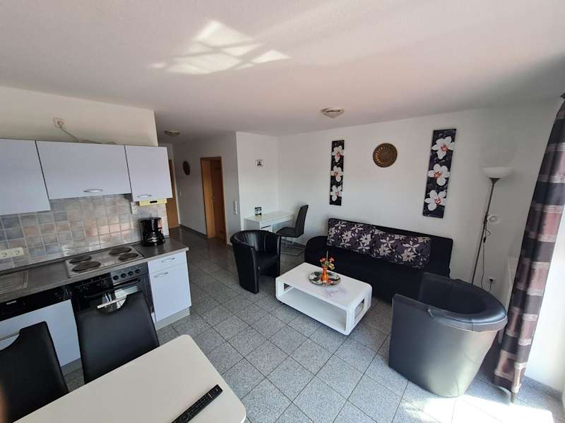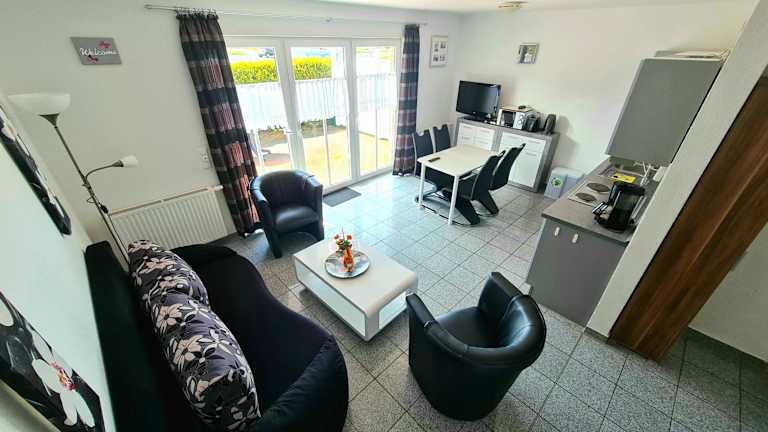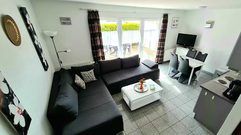 Die Ferienwohnung besteht aus 1 Schlafzimmer, einem Wohnzimmer und einer voll ausgestatteten Küche mit Kühlschrank und Kaffeemaschine. Zudem gibt es 1 Badezimmer mit Dusche und Haartrockner. Handtücher und Bettwäsche werden bereitgestellt.